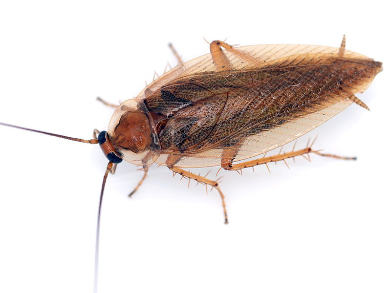 Die Amerikanische Schabe (Periplaneta americana) ist zwischen 2 und 4 Zentimeter groß und damit sehr typisch für ihren Artnamen. Der Halsschild (Pronotum) ist sehr groß, die Beine kräftig, die Fühler lang und die Flügel so groß, dass die Schabe damit problemlos fliegen kann. Dies tut sie aber selten und läuft lieber. Die Flügel des Weibchens sind kleiner. Diese Art ist wie alle Schaben sehr lichtscheu. Sie hat eine rotbraune Körperfarbe.